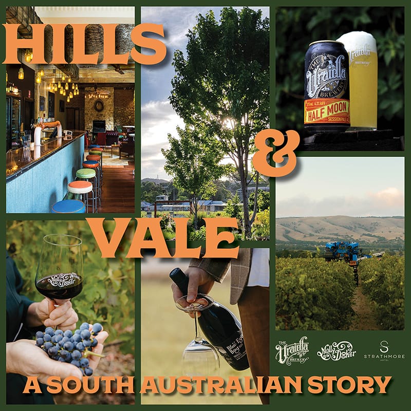 BUY TICKETSHills & Vale - A South Australian Story - A celebration of Mollydooker wine, Uraidla beer and the stories behind the vines and brews. Experience a 4 course degustation dinner with dishes championing premium SA produce, each course paired with a Mollydooker Wine and a Uraidla beer - side by side, sip by sip.