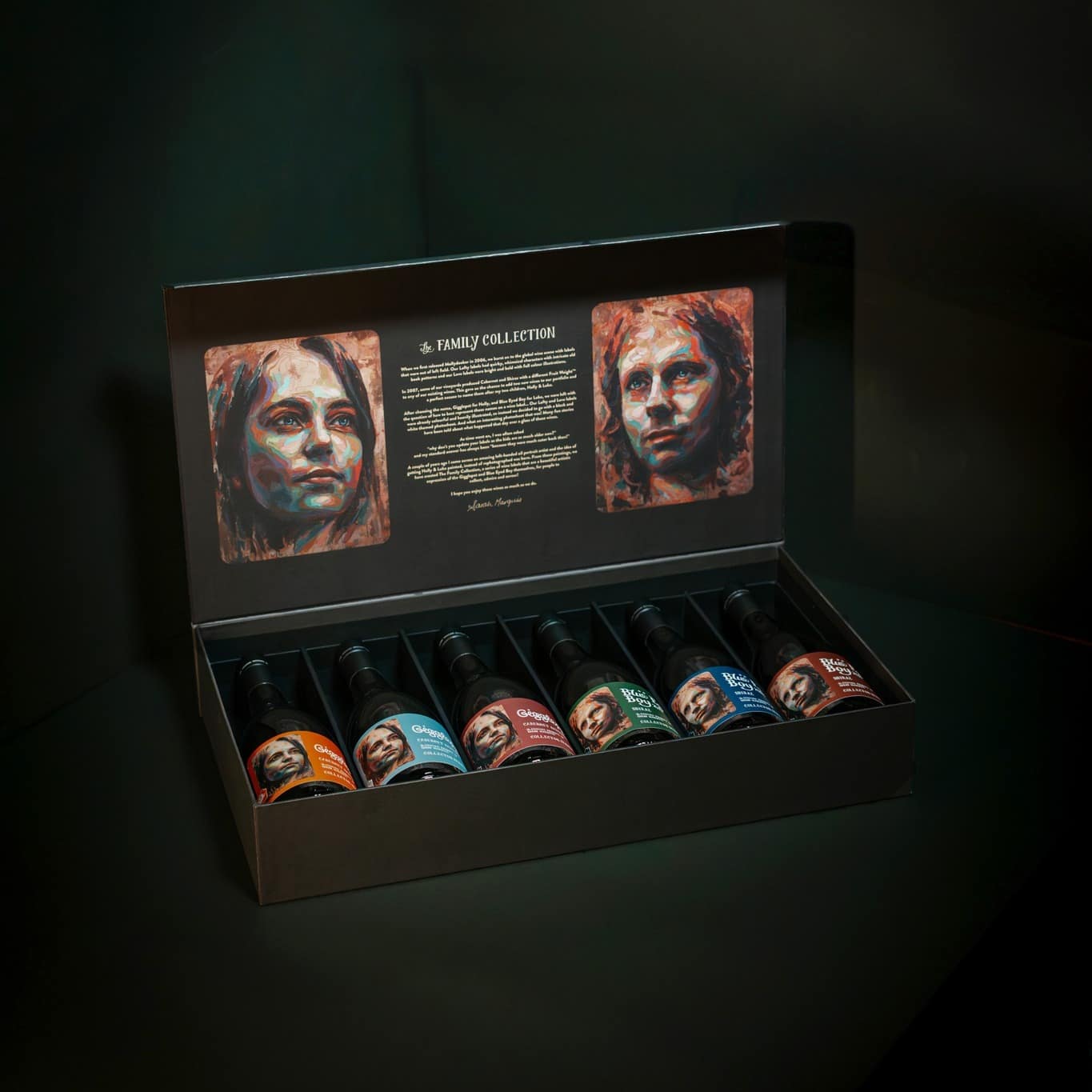 This exclusive tasting experience showcases ‘The Family Collection’, a limited-edition celebration of our beloved Blue Eyed Boy Shiraz and Gigglepot Cabernet Sauvignon. With rare, cellared bottles and specially designed labels, this is a must for collectors and true Mollydooker enthusiasts.